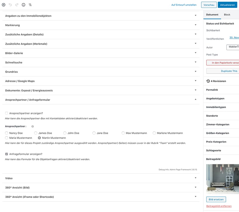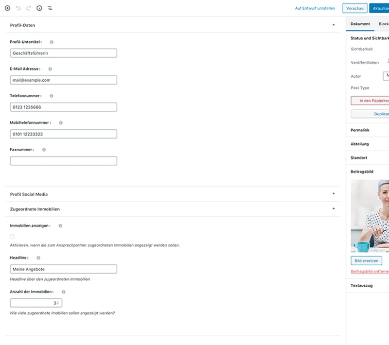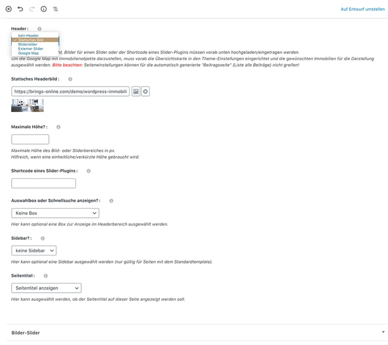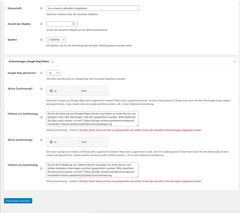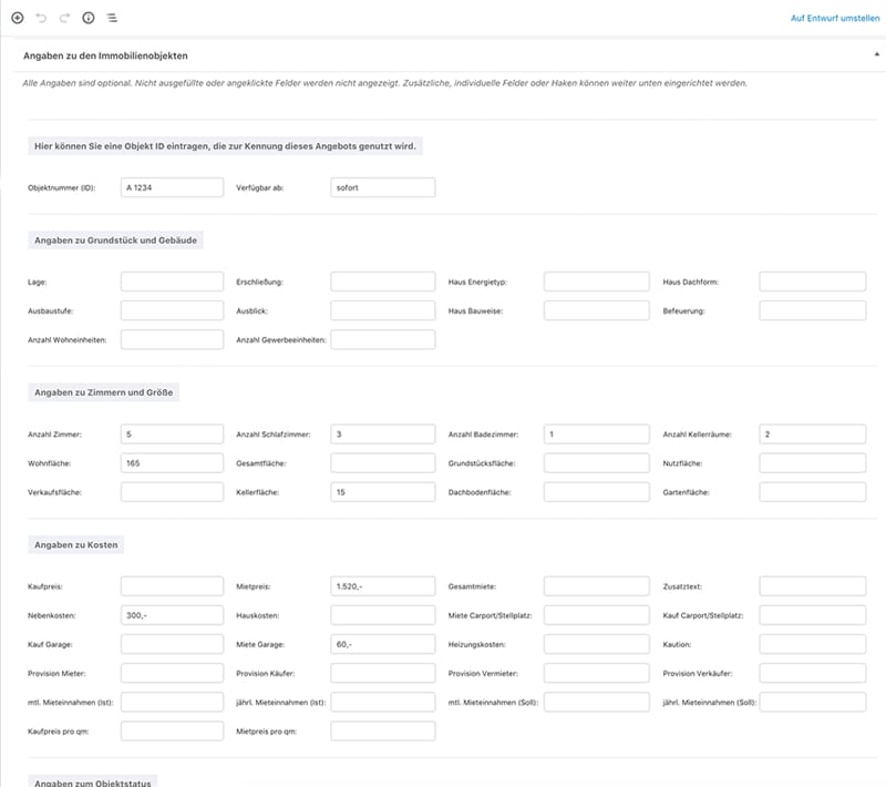 - Shortcodes, z.B. auch für die Präsentation von Immobilien