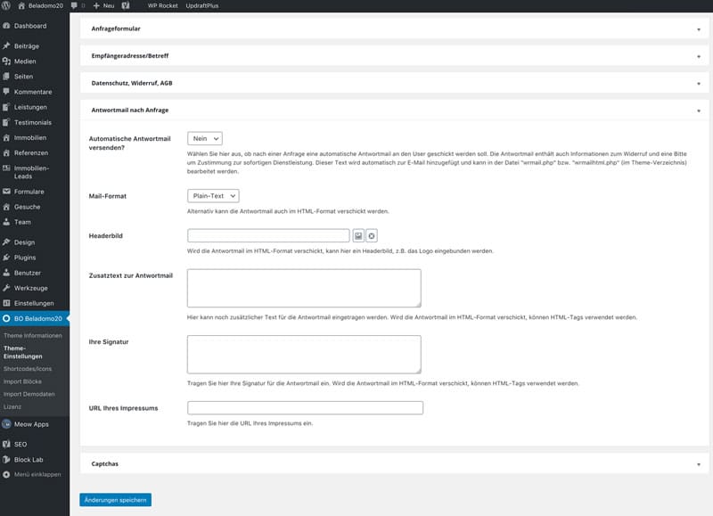 - Das Theme ist vorbereitet für Contactform7 für evtl. zusätzliche Formulare
